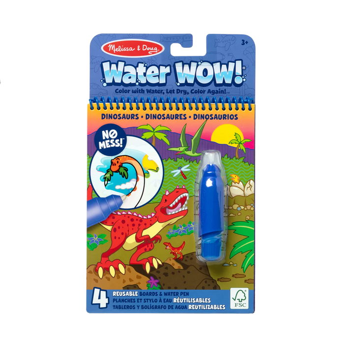 - 4 spiral-bound dinosaur-themed coloring boards and refillable water pen