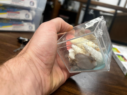 In stockA collection of Sea Shells in a clear box.