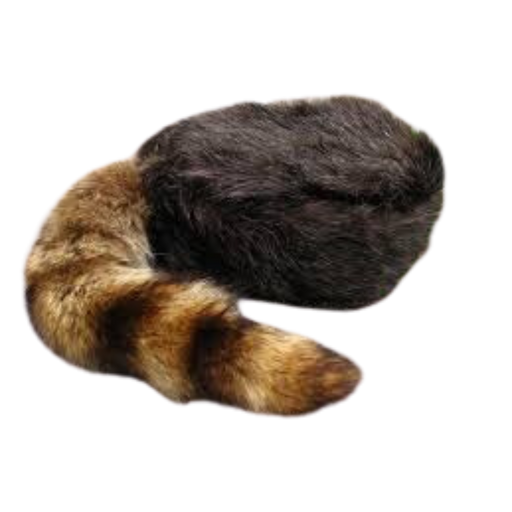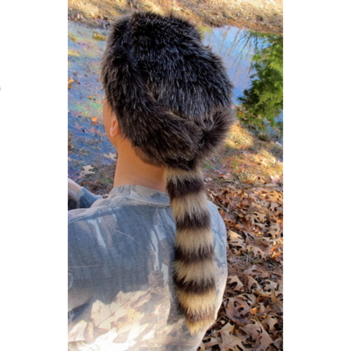 Low stockCoontail/Face Rabbit Fur CapMade from rabbit fur with a genuine raccoon tail, and face sewn on.Size medium.