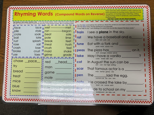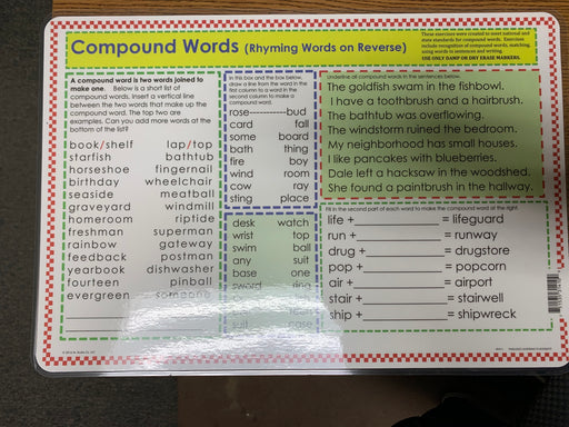 In stockCompound and Rhyming Words Laminated Dry-erase Mat. Double sided.