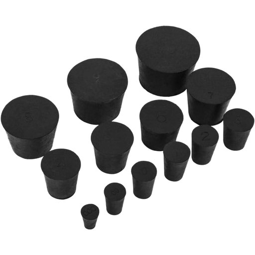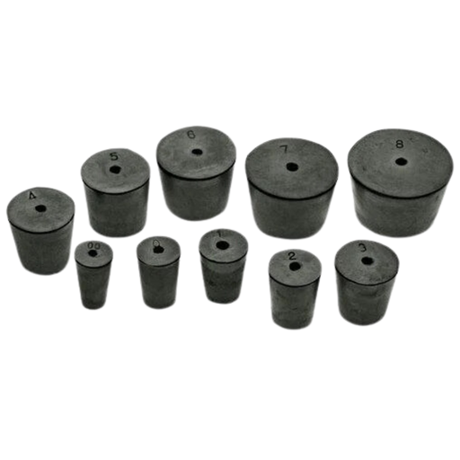 In stockThese rubber stoppers are of high quality, soft, resilient rubber. Diameter is for 25 mm test tubes. These stoppers are size 4 and are solid (no ho...