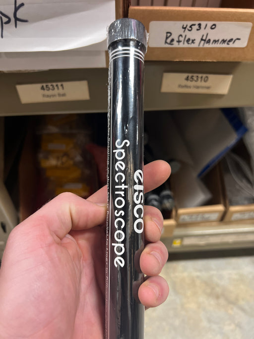 In stockBasic spectroscopes able to view variable light spectra Hold it up to different lights to observe which wavelengths are present Light enters throu...