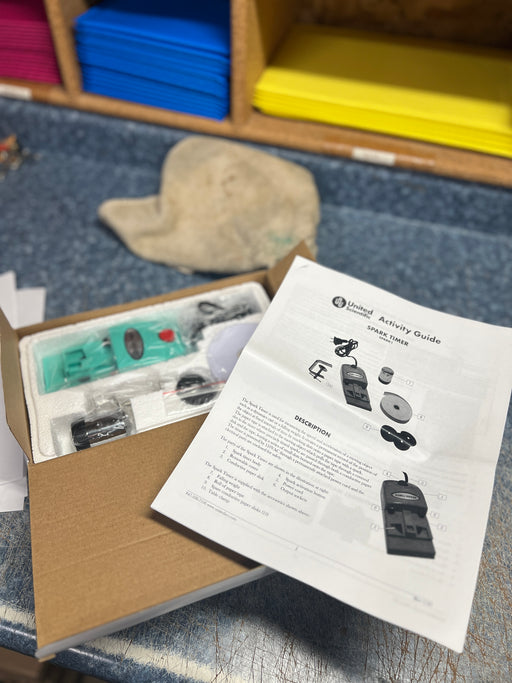 In stockSpark timer is used for measuring velocity and acceleration of falling or moving objects. When the tape is pulled through the timer a spark is crea...