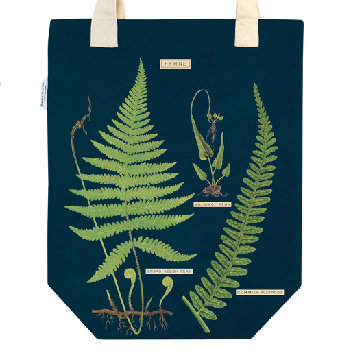 Low stockFern Tote Bag features beautifully detailed vintage images of ferns on a dark blue background. Cavallini & Co. tote bags make great gifts, and ...