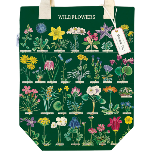 Out of stockThe New Wildflowers in Bloom Cotton Tote Bag is densely packed with wildflower images, each having its scientific name at the bottom. Cavallini &a...