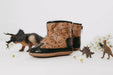 The cozy lining keeps little toes warm. Back zipper for easy on and off.