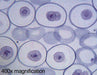 This slide of Ascaris mitosis is used with many biology courses. Each slide is individually made, and will vary slightly from the one pictured here.