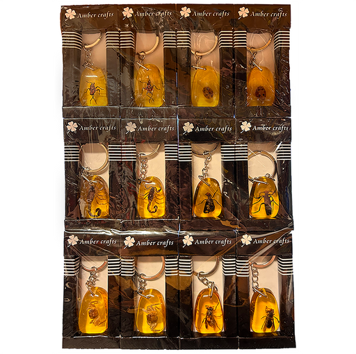 In stockThese assorted amber keychains come with insects inside! These insect specimens are made of using artificial amber and natural bugs. The bright col...