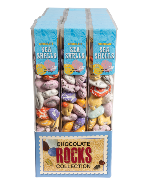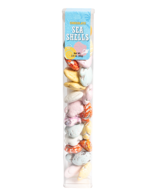 In stockCandy coated, milk chocolate bits. They are shaped to resemble SEA SHELLS and exciting colors. 2.8oz