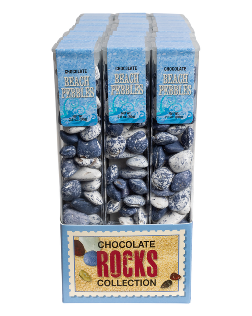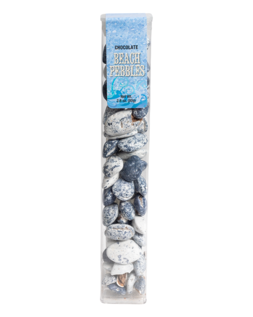 In stockCandy coated, milk chocolate bits. They are shaped to resemble BEACH PEBBLES. They are exciting colors. 2.8oz