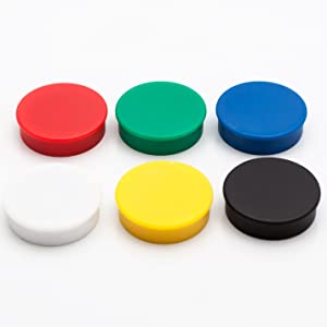 Plastic encased magnets, great magnets with amazing holding power for holding your favorite photo's or notes to any magnetic surface, or for play. Colors will vary, each side a different color. The round magnets are 1" diameter 3/8" thick.