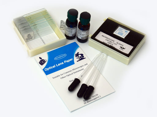 In stockThis set comes with 10 blank glass slides, 2 single concave slides, and approx. 20 glass coverslips! Packed in a reusable 25 pc plastic slide box....