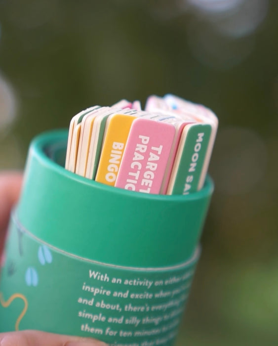 Pick a play prompt strip to give you all the inspiration you need whether you’re a parent, a grandparent, a childcare worker or simply the one in charge of a child for a day! Not every activity will suit your day – or their mood – so just turn the stick over or choose another one from the pot.