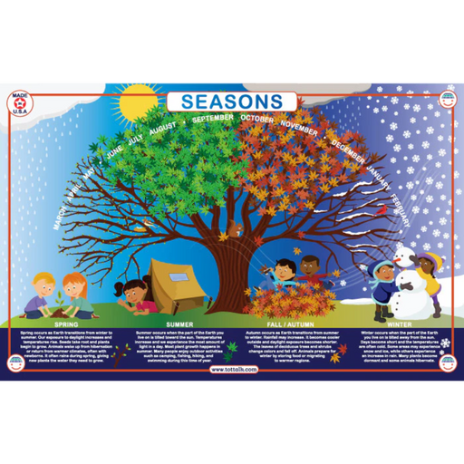 In stockJump into Fall with Tot Talk's Seasons placemat. Learn about the science behind what causes the four seasons. Which months of the calendar year mak...