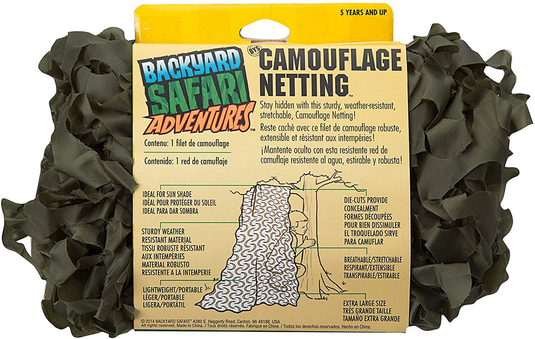 Blend in with the natural environment, make a sun shade, erect a shelter or create a blind to stay hidden while you observe nature with this Camouflage Net from Backyard Safari. For ages 6 and older.