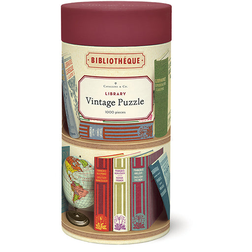 In stockLibrary Books 1,000 Piece Puzzle Packaged in a 10" tube, with handsewn muslin bag inside Featuring images from the Cavallini archives 22" x 28" (55...