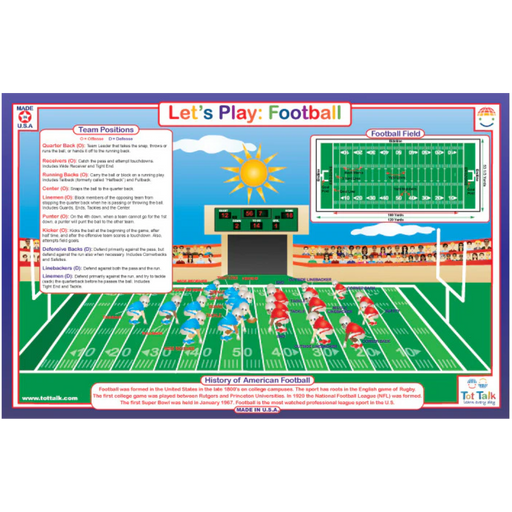 In stockStepping onto a baseball diamond for the first time can be really scary. With the Tot Talk Baseball Placemat, a child can see the field and learn a...
