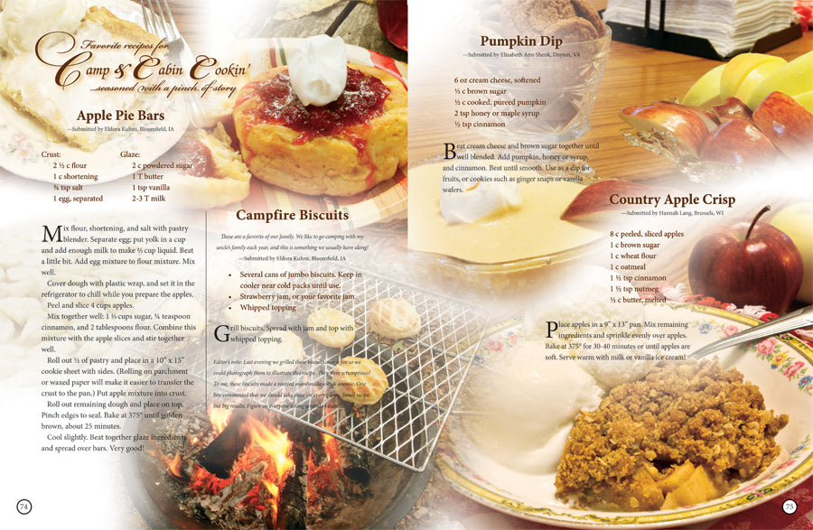 Camp & Cabin Cookin' Cookbook Seasoned with a pinch of story! Four years ago we added Camp & Cabin Cookin' as a bonus feature in the Study Guide edition of Nature Friend Magazine. We invited readers to submit recipes, and many did and still do.This book is a compilation of most of those recipes, along with some new ones. We invited you to season your recipes with a pinch of story, and a few of you did. We have sprinkled a few more stories throughout this book for added interest.We have even included several recipes to make treats for your feathered friends. And now let's have some fun. Do you grin when you learn there is a tub of freshly-churned homemade ice cream on the menu? We thought so. Perhaps you took a turn cranking the handle.In this cookbook, we have hidden the ingredients to make a batch of strawberry ice cream—six eggs, a measuring spoon of vanilla, a strawberry, a bag of sugar, a milk cow, and a nostalgic cream can. Pages are in full color, with most recipes shown in photographs.