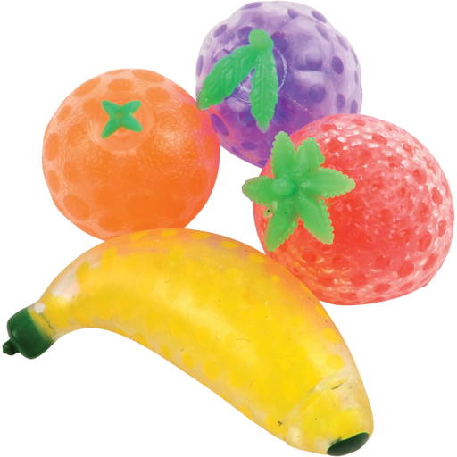 Low stockStretchy squishy fruit shapes, filled with water beads. Sold Individually.