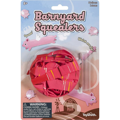 In stockFarm Fresh’s Barnyard Squealers reusable balloon toys launch upon release, making a squealing sound like a pig. Includes 8 balloons and 2 straws wi...