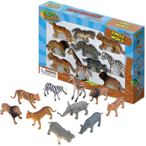 In stockJungle World Animal Figures 10 piece set Jungle animals for imaginative play Includes Lion, tiger, giraffe and more Realistic hand painted deta...