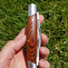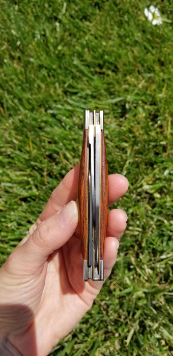 This 4" 3-stainless steel blade knife has mahogany wood handles. Useful for all your outdoor adventures.
