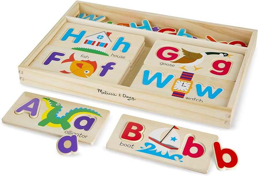 Spelling toy with 13 double-sided boards and 52 colorful letters also includes Includes both uppercase and lowercase letters of the alphabet.