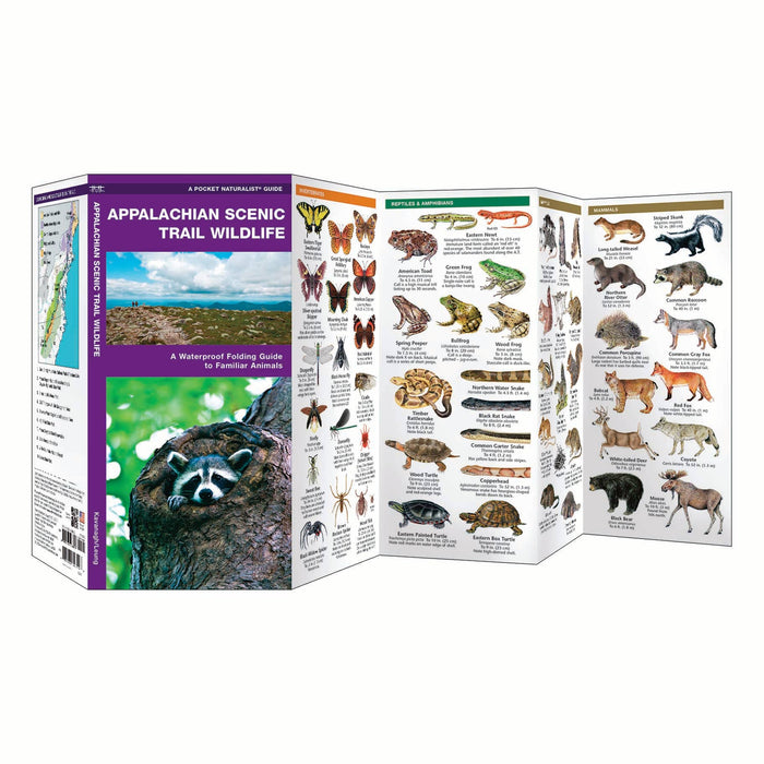 The Appalachian Trail runs 2,175 miles from Springer Mountain in Georgia to Mount Katahdin in Maine, encompassing a myriad of ecosystems and inhabitants. This beautifully illustrated guide highlights over 140 familiar species of birds, mammals, reptiles, amphibians and insects (including the dreaded sweat bees). A map also features prominent wildlife sanctuaries along the A.T. Waterproof for durability, this lightweight, pocket-sized folding guide is an excellent source of portable information and ideal for field use by visitors and resident alike. A backpacker's best friend, it only weighs only one ounce. Made in the USA.