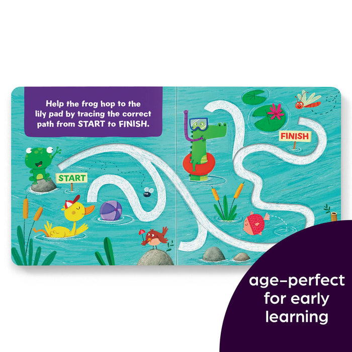 Encourage your baby’s growth with this introduction to mazes. Explore six colorful, adorable mazes and lead animals from Start to Finish. Babies and toddlers can build their fine-motor skills by tracing the die-cut paths to help a kitten to its friends, a seal to a swimming hole, a bird to its nest, and so much more.