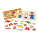This wooden set contains 45 mix-and-match pieces to assemble Mama, Papa and Baby Bear. It's fun to change their expressions and their clothing to express their every mood. The wooden box has compartments for easy storage and the box lid conveniently serves as a puzzle board. Great for story telling fun!