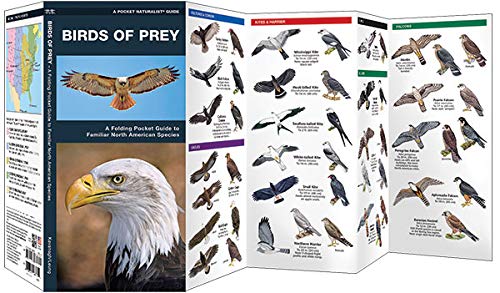 What distinguishes a bird of prey? They have exceptionally good vision, a sharp, hooked beak, and powerful feet with curved, sharp talons for grasping prey. This beautifully illustrated guide highlights over 50 familiar species of vultures, eagles, falcons, kites, hawks and owls (most perching and in flight), features silhouette profiles of key species groups and includes a map identifying raptor flyways and migratory hotspots. Laminated for durability, this lightweight, pocket-sized folding guide is an excellent source of portable information and ideal for field use by naturalists of all ages. Made in the USA.