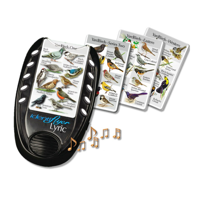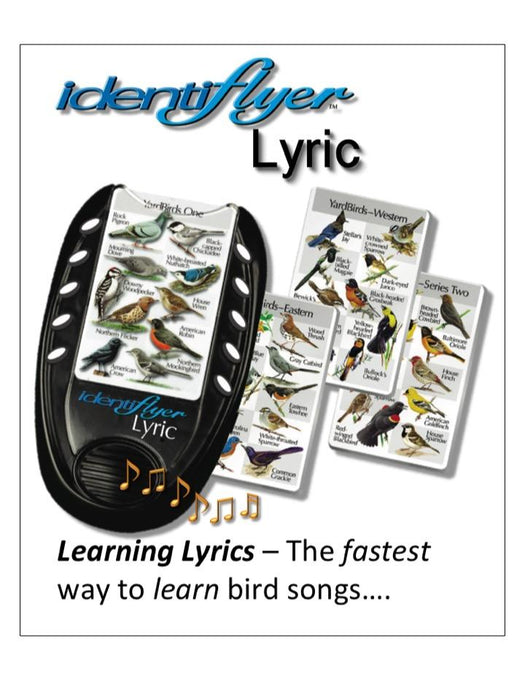 Learning bird songs with the IdentiFlyer Lyric has never been easier. Almost everyone can become an expert. Each bird song has Learning Lyrics, words and phrases that help you connect the bird's picture and name to its song. (The Eastern Towhee sounds like "drink your tea")