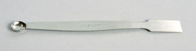 Stainless steel spatulas with one flat end and one spoon end. About 4" long.