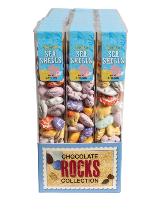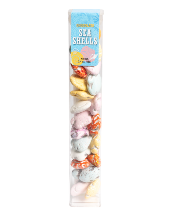 Candy coated, milk chocolate bits. They are shaped to resemble SEA SHELLS and exciting colors. 2.8oz
