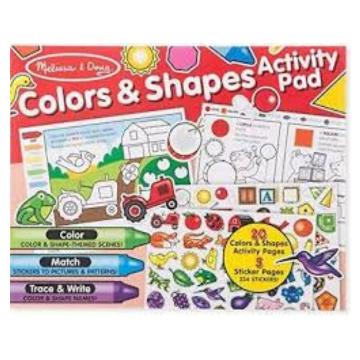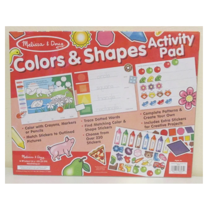 Kids will have hours of fun with this jumbo coloring, writing and sticker pad jam-packed with fun color and shape activities! There are color- and shape-themed scenes to color, more than 230 stickers to match to pictures, and tracing and writing activities to help kids four and older learn to recognize shapes and colors. The 20 activity pages are printed on top-quality heavy bond paper, perfect for crayons, markers, or pencils.
