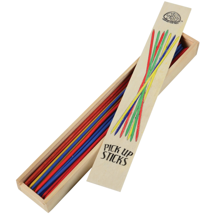 This classic game of pick up sticks is fun for the whole family. Try to pick up the sticks without touching any others. Instructions for play are included in the wooden carrying case.
