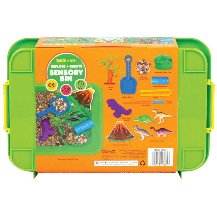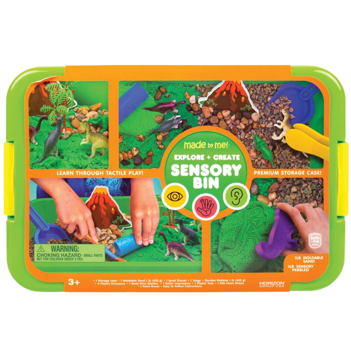 Open up a world of tactile fun with the Made By Me® Explore + Create Dino Galaxy Sensory Bin! This specially curated box of fun offers tons of ways for little ones to learn through tactile play!