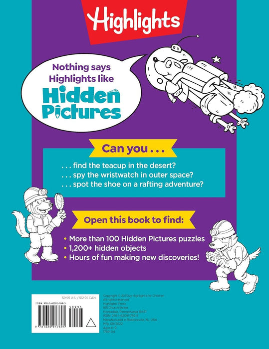 Over 4,000,000 Highlights Hidden Pictures books sold! Can you find the banana in the museum and the ice cream cone on the mountain? Check out over 100 adventurous scenes in this puzzle book, featuring Highlights’ signature black-and-white Hidden Pictures puzzles.