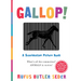 Gallop! features a horse in full gallop and a turtle swimming up the page. A dog runs, a cat springs, an eagle soars, and a butterfly flutters. Created by Rufus Butler Seder, an inventor, artist, and filmmaker fascinated by antique optical toys. Scanimation is a state-of-the-art six-phase animation process that combines the "persistence of vision" principle with striped acetate overlays to give the illusion of movement.