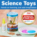 Explore the world of botany science with the Grow N' Glow Terrarium! This science exploration kit allows you to craft, plant, water and grow your own terrarium mini ecosystem Comes with everything a young scientist needs for two full plant life cycles! Includes a plastic mason-style jar, a blue decorative lid, potting mix, Organic Chia and Wheat Grass seeds, glow-in-the-dark forest figurines, glowing sand, river stones and a plant mister to water your terrarium. Watch your DIY terrarium glow and grow! Add dimension to your terrarium with translucent glow-in-the-dark star and constellation stickers that will light up your terrarium garden at night! The perfect STEAM experience that combines science, art and crafts. Create your own mini eco-system while building about responsibility, nurturing skills and patience. Your terrarium will begin to grow in as little as 3-4 days. The potting mix is vermiculite. All seeds are from and packaged in the USA.
