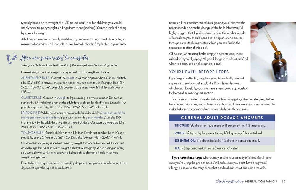The Homesteader’s Herbal Companion is a beautiful guide for the modern day homesteader. From learning how to incorporate herbs and essential oils around your home, to learning how to enhance your family’s health and well-being, this book is the go-to resource for those wishing to live a more natural homesteading lifestyle. This book takes readers through the basics of herbalism, including the different types of herbs and their uses. It also breaks down how herbs are used in tinctures, salves, essential oils, and infused oils. You’ll learn how to efficiently incorporate herbs into your lifestyle, creating your own herbal remedy cabinet for yourself and for your livestock as well. And through encouragement and evidence-based information, you’ll be confident using herbs, cooking with herbs, and sharing your herbal products with your friends and family. 320 page paperback with an array of beautiful photos and easy to read terminology.