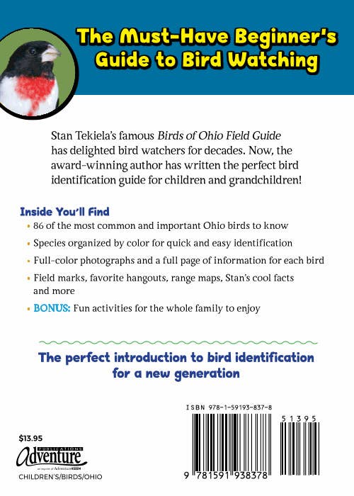 With fun activities for the whole family, like building a birdhouse and preparing your own bird food, this is a must-have beginner's guide to bird watching in the Buckeye State! Stan Tekiela’s famous Birds of Ohio Field Guide has been delighting bird watchers for years. Now, the award-winning author has written the perfect bird identification guide for children! The Kids’ Guide to Birds of Ohio features:
