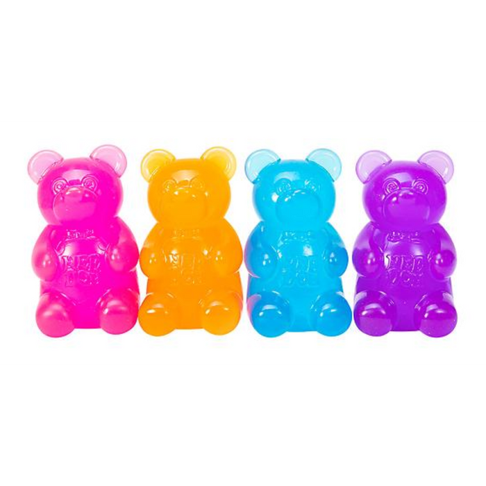 NeeDoh Gummy Bear is as scrumptious-looking as it is squishy. In comes the gooey goodness of a gummy bear, with a super-sized squeeze! Just pull, squeeze, or smush this tactile treat and the sweet squish will soothe your soul. Wacky style eyes and a cute bowtie make these giant gummies come to life. At 3.5” inches tall, this jumbo gummy bear provides endless, wonder-filled play. Enter a world of pure sweet satisfaction with NeeDoh Gummy Bear. They look almost good enough to eat, but so much better to squish!