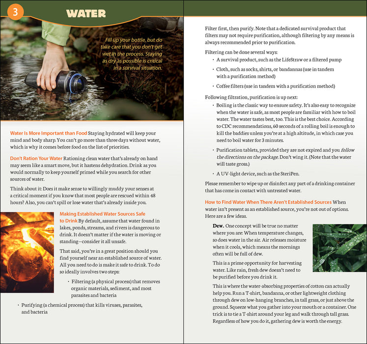 In most real-world situations, the best strategy is to remain calm, sit tight, and wait for rescue. This guide covers everything that happens until help arrives. Learn some easy rules to remember, like 3-3-3 and S.T.O.P.—and why shelter, fire, and water are top priorities. Discover time-tested techniques for making yourself easier to find. Topics in this Adventure Skills Guide include everything from building a shelter and making a fire to surviving in a vehicle and administering first aid, as well as advice on knives, emergency kits, and more.