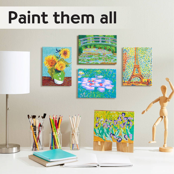 Illustrated instructions and a number guide help beginner artists paint like the masters.
