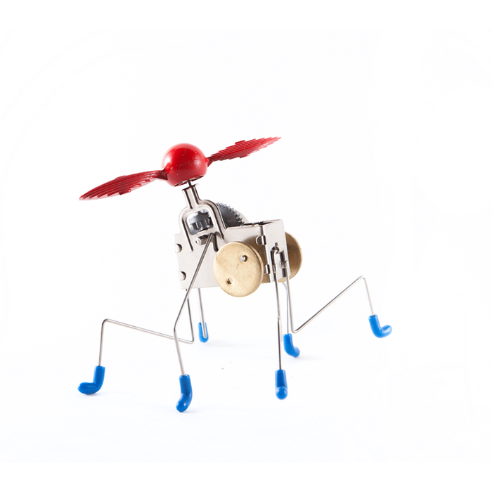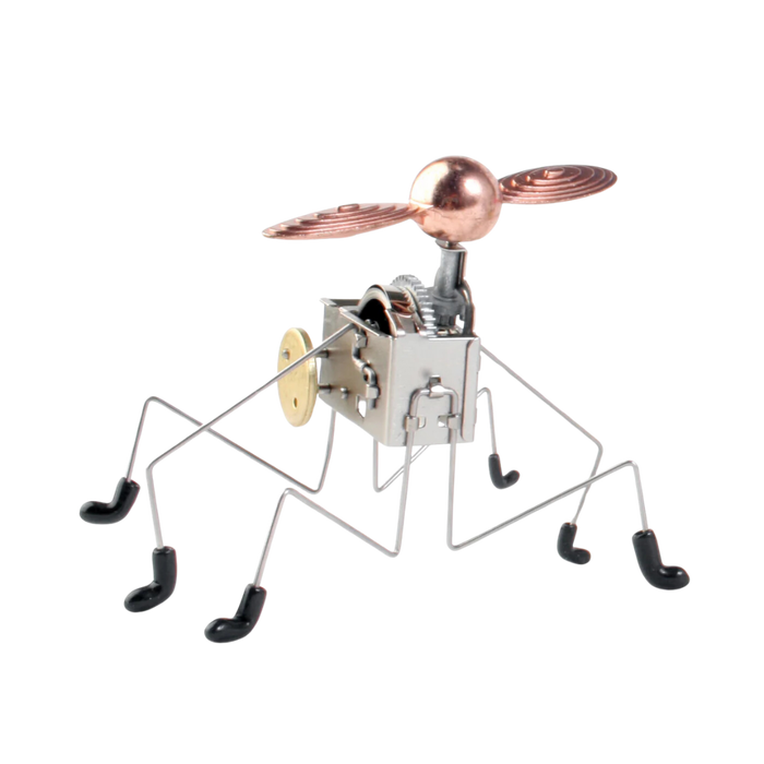 Carlo Maria Pintacuda was a legendary Italian race car driver and the inspiration for this wind-up that bares his name. The plucky and unpredictable spirit of a feisty Italian race car driver is re-imagined with our Pintacuda wind-up. This wind up has legs at different heights, which allows the Pintacuda to hop about and appear to take flight. The propeller key can be wound with just one finger, and you can slightly change Pintacuda’s behavior by bending the wire legs gently near the body or the knees. This is a feisty one.