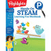 This preschool STEAM-based learning workbook features hands-on experiments, projects, and activities to get kids thinking critically and creatively while having fun.