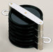 Impact resistant, chip-proof, balanced wheel, injection molded V-groove, 2" diameter. The housing is a steel block with swivel hooks attached at top and bottom, complete 360