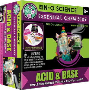 Learn the basics of chemistry and chemical reactions with this essential chemistry set. Investigate the properties of acids and bases. In this kit you'll discover some revealing pH Experiments. This box kit includes the necessary equipment to investigate Acids and Bases. Includes Ein-O's I Know Guide. Ages 3 and up.