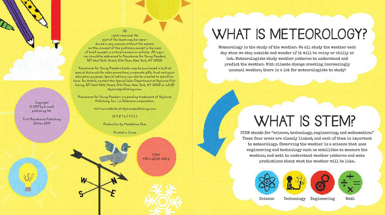 [Skyhorse Publishing] Every boy and girl needs a strong background in STEM (Science, Technology, Engineering, Math) Here is a full color activity book that teaches youngsters the science of Meteorology. Meteorology is the science of the weather. Now children can discover more at home by reading the simple explanations and doing the beautifully illustrated activities on each page of this colorful, fun activity book. Let your children experience the wonderment of weather and give them a lifelong passion for STEM subjects.
